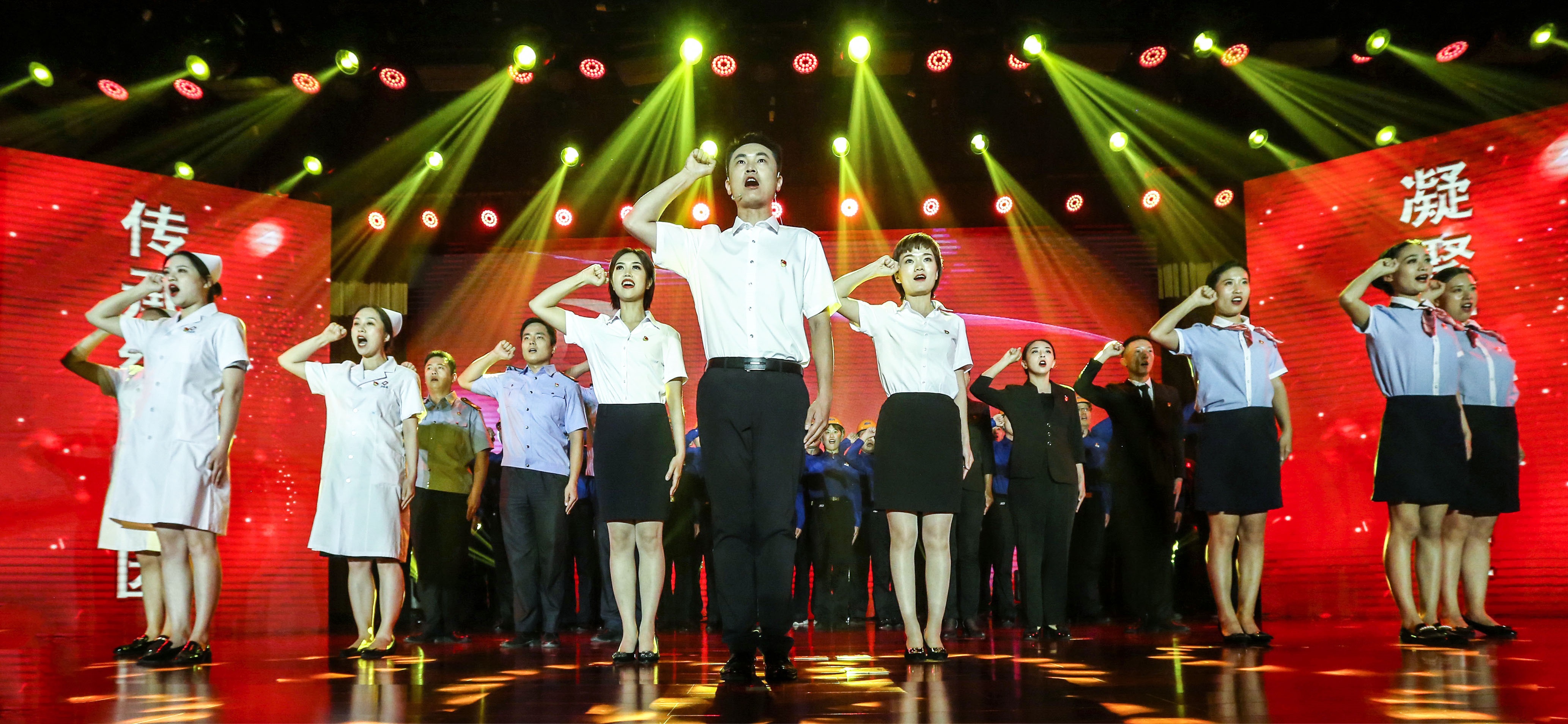 文藝匯演在《沒有共產(chǎn)黨就沒有新中國》激昂的旋律中推向高潮,氣壯山河的歌聲激發(fā)濟二人奮發(fā)有為,以奮斗的姿態(tài)面向未來。