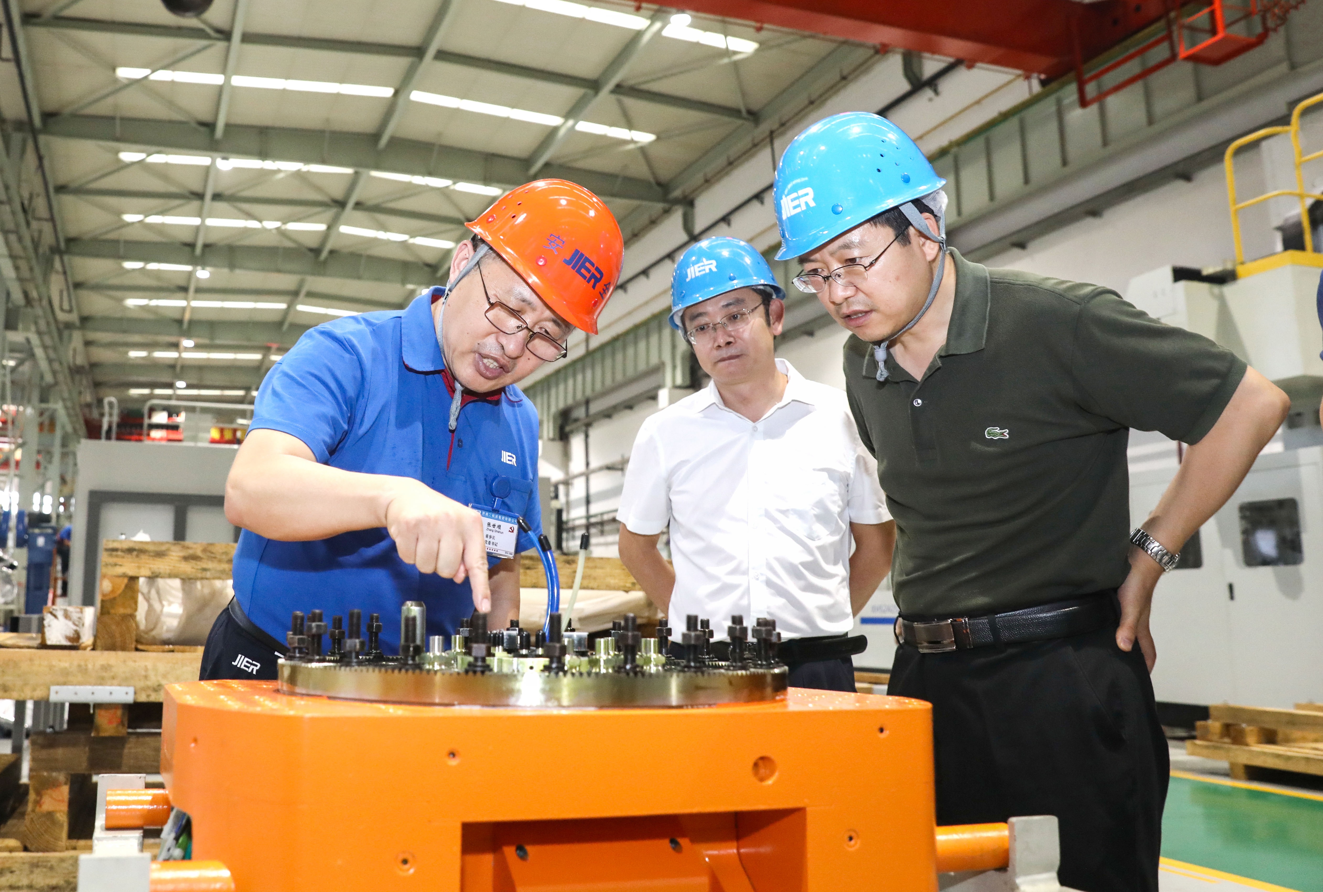 參觀過程中,張世順董事長向史德信副司長介紹了企業(yè)發(fā)展歷史、主導(dǎo)產(chǎn)品以及服務(wù)領(lǐng)域等情況。針對調(diào)研組關(guān)心的企業(yè)用工、智能制造和工業(yè)機(jī)器人應(yīng)用情況,董事長說到,企業(yè)用工學(xué)歷層次逐年提高,加快苦累臟險以及簡單重復(fù)性勞動的自動化替代,持續(xù)提升生產(chǎn)自動化水平;在企業(yè)內(nèi)部打造數(shù)字化智能工廠,建設(shè)工業(yè)互聯(lián)網(wǎng)平臺,研發(fā)智能產(chǎn)品;采用頂料桿智能加工單元和自動焊接等設(shè)備,不斷提升加工、焊接效率和質(zhì)量。史德信副司長說到,作為裝備制造業(yè)的龍頭企業(yè),濟(jì)二在智能制造等方面的發(fā)展具有典型性,對國家相關(guān)政策的研究制定具有重要的參考意義。