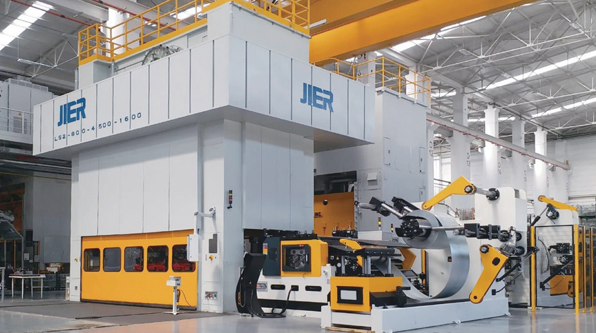 多工位、級(jí)進(jìn)模線適用于汽車、農(nóng)機(jī)、軸承、電機(jī)、電器、輕工、紡織機(jī)械等各工業(yè)部門。這種壓力機(jī)在一次工作行程中可完成多道工序,如落料、沖孔、拉伸、彎曲、切割、校正等, 是一種高效率壓力機(jī);與普通壓力機(jī)相比,多工位壓力機(jī)具有能自動(dòng)上下料、材料利用率高、能源消耗低、生產(chǎn)效率高、壓力機(jī)占地面積小、生產(chǎn)成本低等優(yōu)點(diǎn),對(duì)大批量生產(chǎn)非常適用。