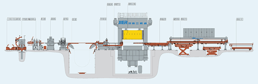 為了便于運(yùn)輸和存放,汽車廠購進(jìn)的鋼材為鋼卷,在加工時(shí)首先需要通過設(shè)備將鋼卷開卷、校平后經(jīng)剪切機(jī)切割成鋼板或經(jīng)落料壓力機(jī)加工成異形板材,為下一步?jīng)_壓做準(zhǔn)備;為此我們根據(jù)用戶不同要求為客戶量體裁衣,設(shè)計(jì)、制造、系統(tǒng)集成的開卷自動(dòng)化生產(chǎn)線。